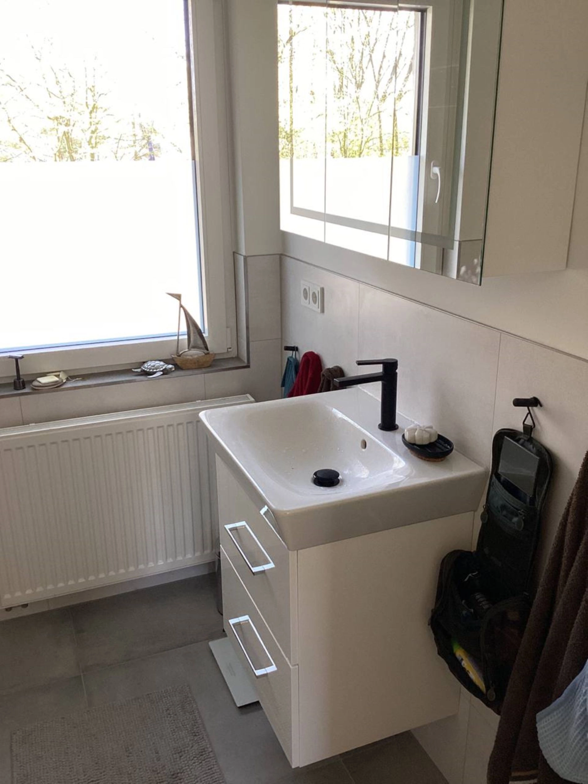 Im Zuge einer umfassenden Badsanierung in einem Einfamilienhaus in Steinfurt-Borghorst wurde gezielt auf aktuelle Designtrends gesetzt. Die Wahl fiel auf Armaturen in schwarz-matt, die dem Raum eine klare, moderne Linie verleihen. Kombiniert wurde dieser Trendlook mit einer zeitlosen Ausstattung, die Langlebigkeit und Stil vereint.